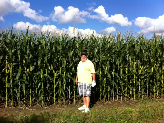 golfing beside a cornfield